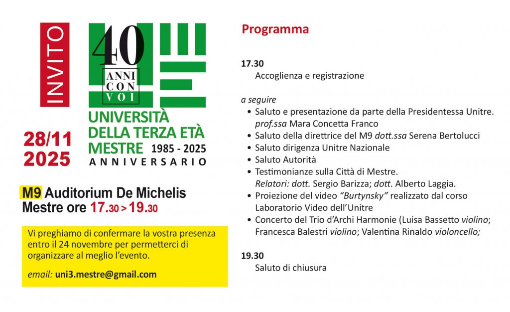 entro Lunedì 24 Novembre all’email uni3.mestre@gmail.com.