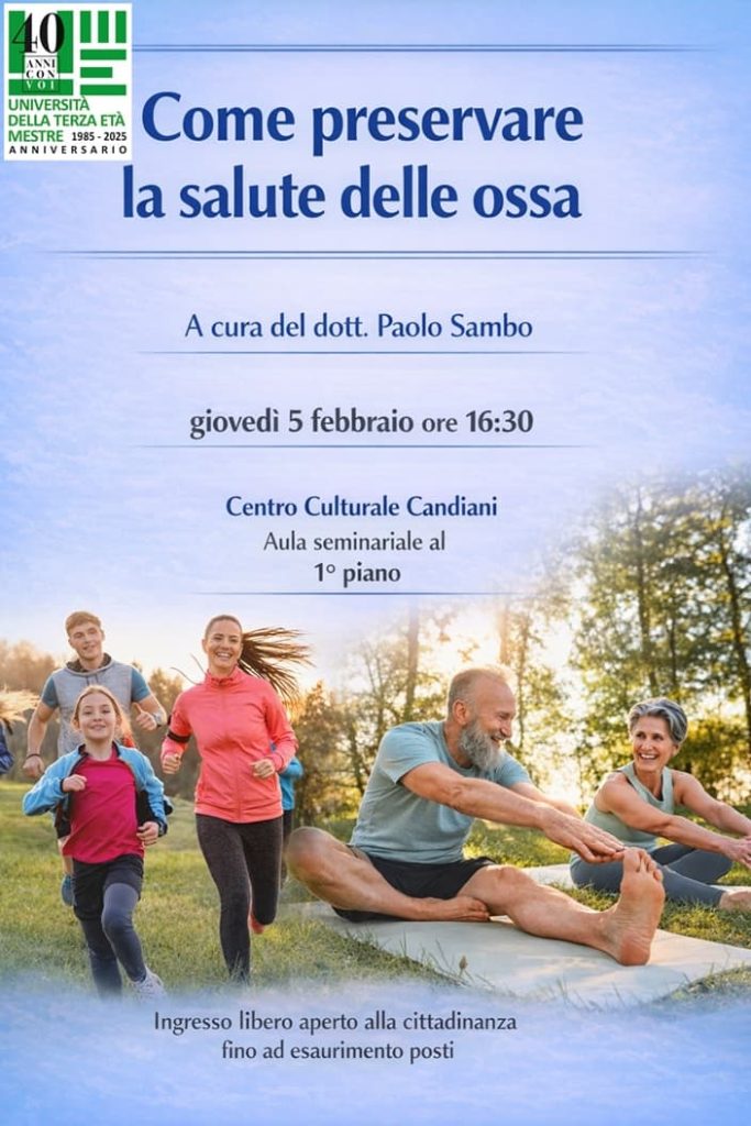 Il prossimo Giovedì 5 Febbraio il Dr. Paolo Sambo spiegherà come prenderci cura della struttura portante del nostro corpo, cioé le ossa.