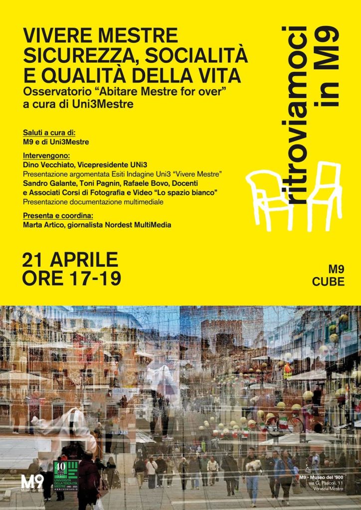 I risultati dell’indagine ‘Vivere Mestre: sicurezza, socialità e qualità della vita‘ a cui hanno partecipato i soci nell’ambito dell’osservatorio ‘Abitare Mestre for Over’, a cura di Unitre Mestre, verranno presentati il prossimo 21 Aprile negli spazi dell M9 Cube.